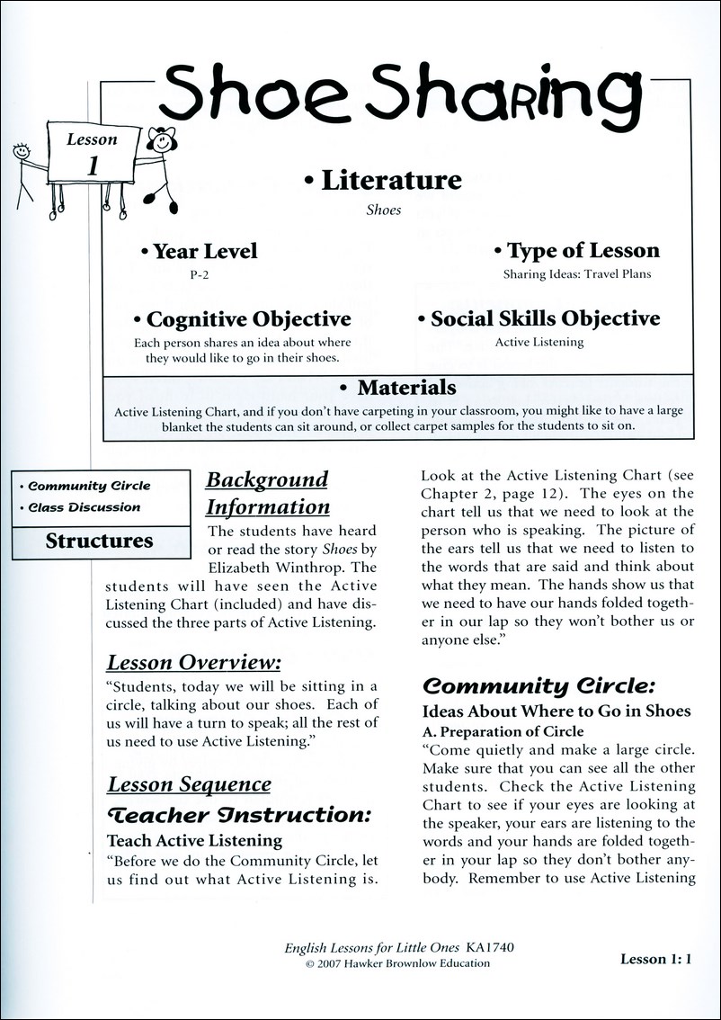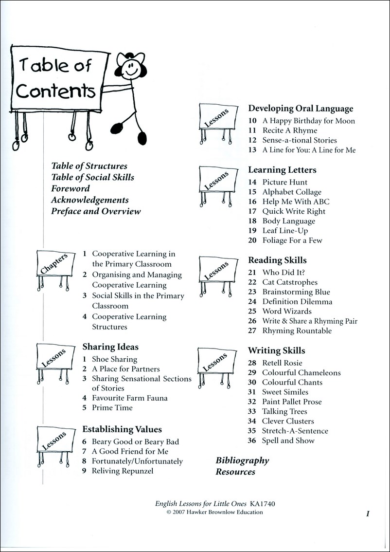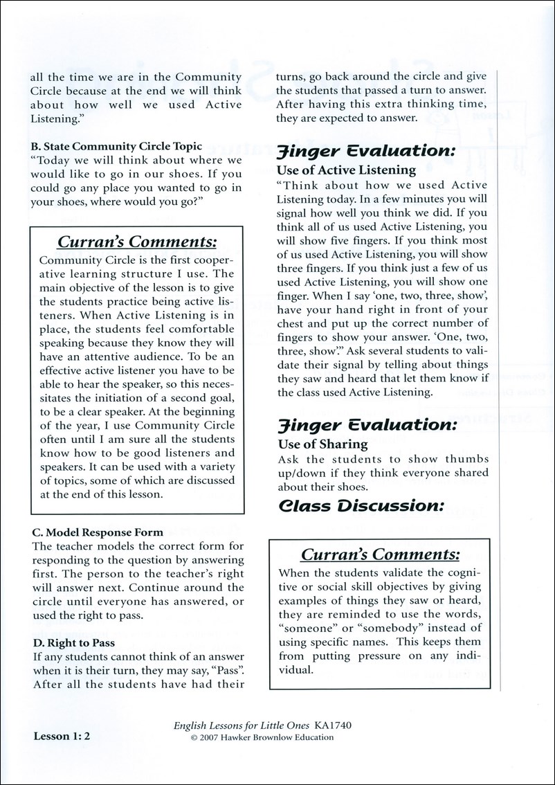 This is the most popular primary cooperative learning book in the world! It makes teaching English skills to preps, year ones and year twos fun and easy! Lorna Curran provides concrete management tips and a social skills program that makes your little ones polite and helpful while they stay on-task. The book has 36 cooperative lessons based on well-known primary literature and tons of great reproducibles for your primary English classroom. 248 pages