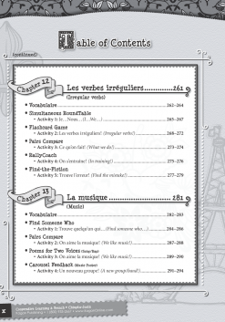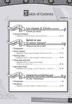 French class has never been so engaging! Instead oflistening to the teacher and doing independent paper-and-pencilpractice, students interact with partners and teammates using KaganStructures. Through creative, structured activities, students discuss,ask questions, give directions, write, quiz, interview, and coach. All of this interaction in French translates into more functionalcommunication and more learning. Students don’t just learn about French.They acquire French through meaningful use. The 15 chapters cover:community, clothes, weather, school, food, professions, dailyactivities, geography, time, date, music, movies, sports, verbs, andadjectives. Fully engage your French students tout de suite! 376 pages.